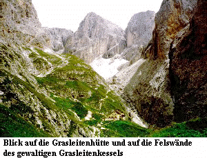 den Weg durch den Grasleitenkettel hinauf zum in einer Höhe von etwa 2.650 m ü.N.N.