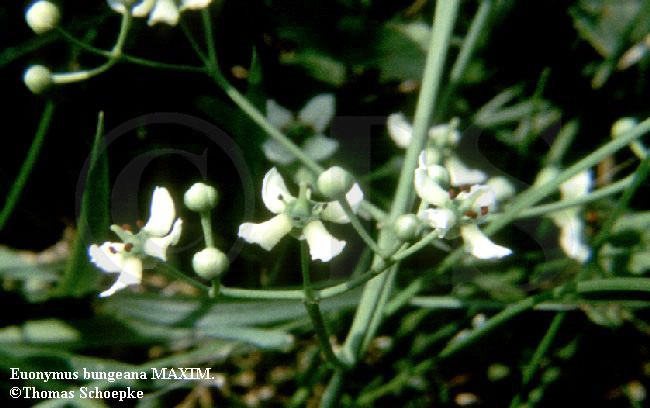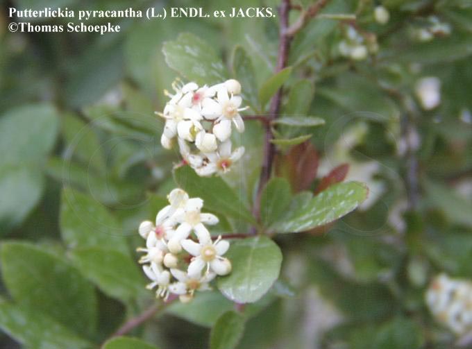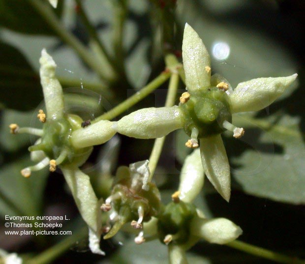 pyriformis - Native, from Isla Santa Cruz, Galapagos Islands (branch) Cryptocarpus pyriformis - Native, from Isla Santa Cruz, Galapagos Islands (branch in flower) Euonymus bungeaneus - Cultivated (branch in flower) Evonymus europaeus - Native, from Brandenburg, Germany (whole plant) Evonymus europaeus - Native, from Brandenburg, Germany (branch in flower) Evonymus europaeus - Native, from Mecklenburg-Vorpommern, Randow-Bruch, Germany (flowers) Evonymus europaeus - Native, from Greifswald/Germany (flower) Euonymus japonicus - Image from Yamasaki Lab. Plant Photo Gallery, from Hiroshima, Japan (branch) Euonymus oxyphyllus - Image from Yamasaki Lab. Plant Photo Gallery, from Hiroshima, Japan (branch in flower) Maytenus octogena - Native, from Isla Santa Cruz, Galapagos Islands (whole plant) Maytenus octogena - Native, from Isla Santa Cruz, Galapagos Islands (fruiting branch) Putterlickia pyracantha - Cultivated (branch in flower) |
