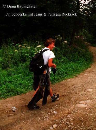 Lustig war es auch in Momenten, in denen andere zu "leiden" hatten, frei nach dem Motto: Schadenfreude - schönste Freude. Zum Beispiel als Dr. Schöpkes sagte: "Mist, ich habe kein Wasser mehr bzw. ich habe es schon noch, nur nicht mehr in meiner Flasche!" Das gesamte Wasser war in eine Ersatz-Jeans und einen Pullover gelaufen, die er dann zum Trocknen an den Rucksack hängte.