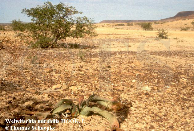 Einzige Art: Welwitschia mirabilis, die in den küstennahen Nebelwüsten