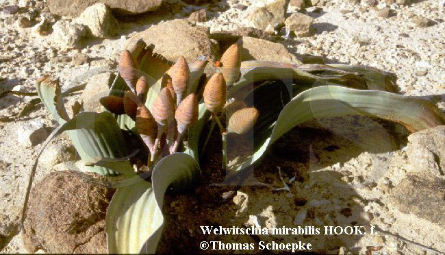 Namibias und Südangolas heimische Welwitschie; angeblich bis 2000 Jahre alt werdende,