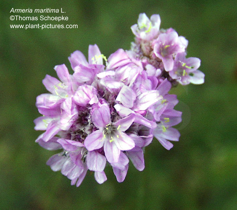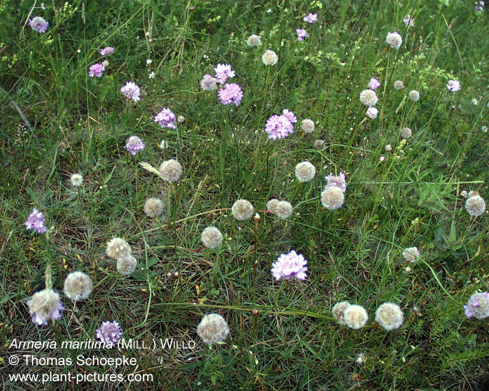 Armeria maritima (MILL.) WILLD. (Gewöhnliche Grasnelke): Wie hier in den Zickerschen Alpen auf Rügen bildet die Grasnelke eine Charakterpflanze sonniger Trockenrasengesellschaften. |