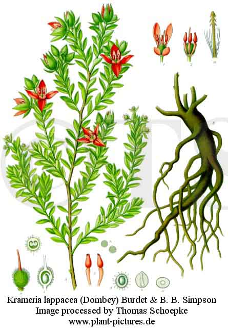 18 Gattungen mit 1045 Arten; Bäume, Sträucher Lianen oder Kräuter, unter diesen einige Vollparasiten (Gattung Salomonia); chemisch charakterisiert durch das verbreitete Vorkommen von Saponinen; Mesophyten oder Xerophyten; Blätter krautig, ledrig oder membranartig, beim Trocken häufig gelblich werdend, gestielt bis halbsitzend, wechselständig, gegenständig oder quirlständig, Nebenblätter vorhanden oder fehlend, Blattspreite ungeteilt, Blattrand ganz; Pflanzen zwittrig, entemophil; Blüten klein oder mittelgroß, zygomorph und meist schmetterlingsförmig (s. Abb. von Polygala venulosa), mit Bracteen, in Ähren, Trauben oder Rispen; Perianth doppelt, K5, meist frei, die zwei inneren häufig groß und petaloid, C5, an der Basis verwachsen oder frei, A8, 10 oder 3-7, meist adnat, nur mit fertilen Staubblättern, G2, seltener 2-5, synkarp, Fruchtknoten oberständig, mit einem oben häufig 2lappigen Griffel; Kapsel-, Stein-, Nuss- oder Flügelnussfrüchte; gemäßigte Zone bis Tropen: nahezu Kosmopoliten, fehlend nur in Neuseeland, Polynesien und in Dauerfrostgebieten. Taxonomische Einordnung: Dahlgren - Überordnung Rutiflorae / Ordnung Polygalales, Cronquist - Unterklasse Rosidae / Ordnung Polygalales, APG - Unterklasse Rosidae / Eurosiden I / Ordnung Fabales. Arzneipflanzen: Polygala senega (Polygalae radix - Senegawurzel; Zugang nur für CD- bzw. registrierte Nutzer). Bilder: Siehe Pflanzenbildergalerie, Familie Polygalaceae. Quellen und weitere Informationen: biodiversity.uno.edu/delta*, Stevens, P.F. (2001 onwards). Angiosperm Phylogeny Website*. |