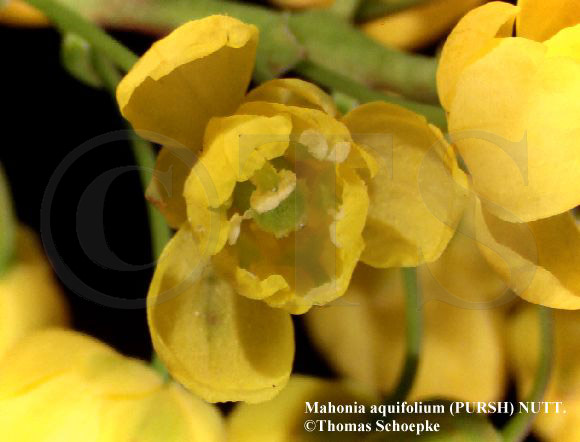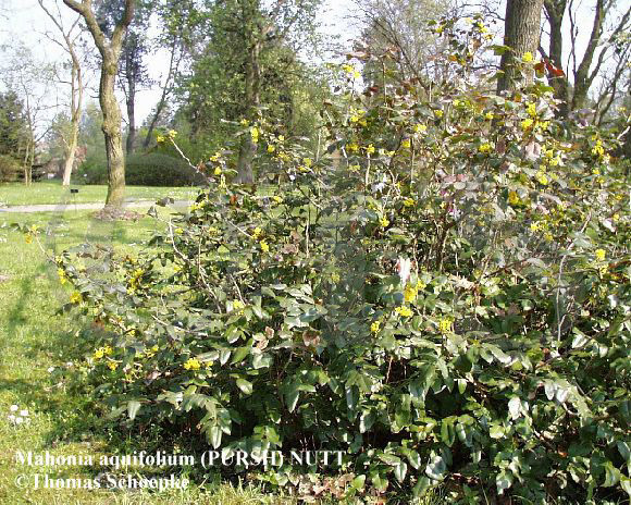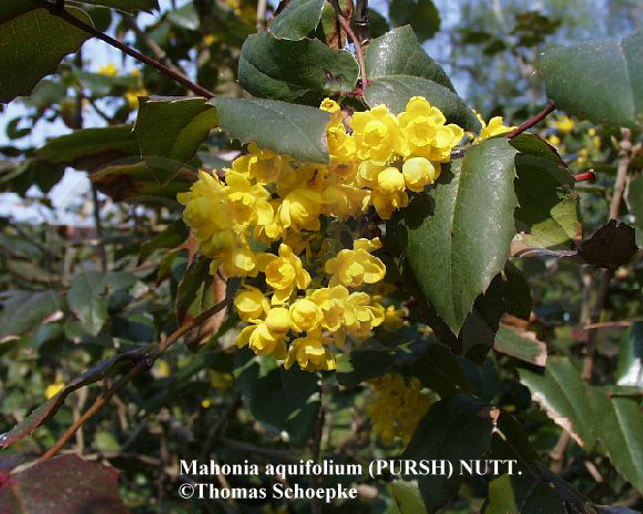 Berberis mit essbaren Früchten. Mahonia aquifolium häufig als