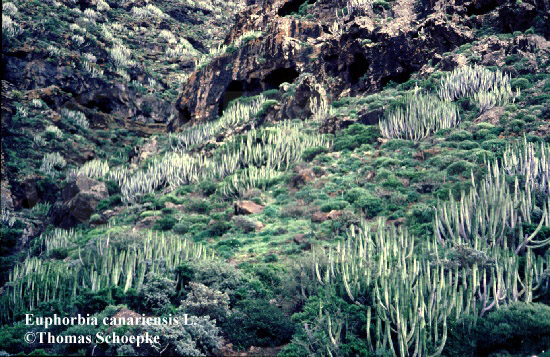 ariden Standorten der zentralen und westlichen Kanaren verbreiteten, sukkulenten Art. |