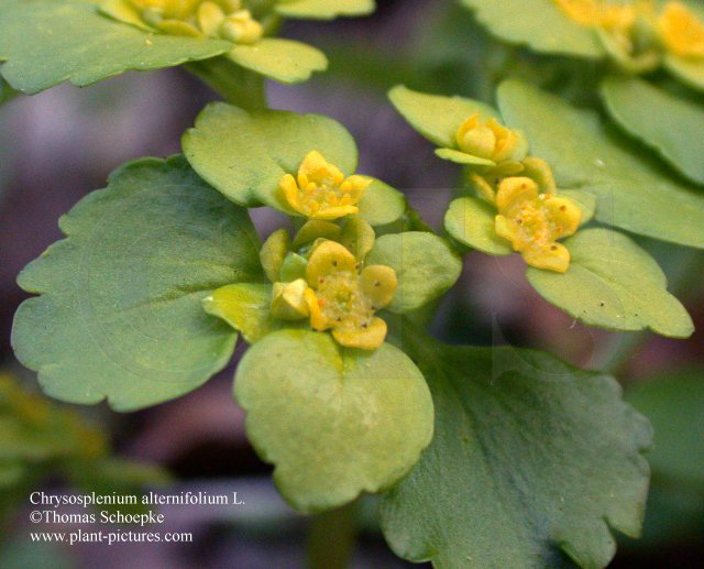 Gattungen Chrysosplenium (Milzkraut) und Saxifraga (Steinbrech)].