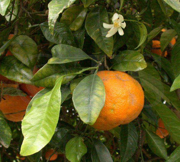 Botanische Beschreibung der Stammpflanze: Kleiner, bis 5 m hoher Baum, seltener ein Strauch. Blätter gestielt, Blattstiel im oberen Teil schwach aber deutlich geflügelt, Blattspreite ledrig und ganzrandig. Blüten meist zwittrig, radiärsymmetrisch und kräftig duftend. Kronblätter weiß, in der Regel 5, zuweilen bis 8. Staubblätter zahlreich, mit weißen, im unteren Teil zu breiten Bändern verwachsenen Staubfäden und gelben Staubbeuteln. Fruchtknoten oberständig, mit einem Griffel und einer dicken, kopfigen Narbe. Mehrfächrige, meist kugelige oder etwas platt gedrückte, in der Regel orange gefärbte Beerenfrucht von recht unterschiedlicher Größe. |