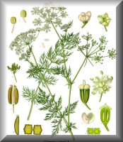 Botanische Beschreibung der Stammpflanze: Meist zweijährige Pflanze, die im Durchschnitt eine Höhe von 30 bis 100 cm aufweist. Die Pfahlwurzel ist fleischig, spindelförmig und etwa 20 cm lang. Der kahle, geriefte Stengel ist aufrecht und vom Grunde an ästig. Sowohl Grund- als auch Stengelblätter sind zwei- bis dreifach gefiedert, unbehaart und weisen eine deutliche Scheide auf. Die Fiedern 1. Ördnung bestehen aus 8 bis 12 Paaren, die Fiedern 2. und 3. Ördnung sind linealisch, die unteren Fiedern dabei typisch kreuzartig gestellt. Haupt- und Seitenäste enden in einer Doppeldolde aus 8 bis 16 Doldenstrahlen. Hülle und Hüllchen können aus bis zu 8 Blättern bestehen, sind in der Regel aber fehlend. Die Kronblätter sind weiß bis schwach rosa und der Fruchtknoten ist wie bei allen Arten der Familie unterständig. |