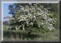 Mehlbeerbaum, Mehldorn, Stumpf gelappter Weißdorn, Zweikern-Weißdorn. Englisch: Harthorne, Hawthorn, Hedge
