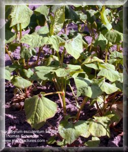 Botanische Beschreibung der Stammpflanze: Einjährige, 20 bis 80 cm hohe, von Juni bis September blühende Pflanze mit spindelförmiger Wurzel. Der hohle, runde Stengel ist aufrecht, wenig ästig, oft rot überlaufen und ausgesprochen saftig. Die wechselständig angeordneten Laubblätter sind herzpfeilförmig zugespitzt, so lang oder länger als breit und im Umriss fast fünfeckig. Die Blattlappen sind stumpf oder abgerundet und am Rande weit ausgeschweift. Die unteren Blätter sind lang gestielt, die obersten fast sitzend. Die für Knöterichgewächse typische Ochrea ist nur sehr kurz, schief gestutzt und kahl. Die Blüten sind zu vielen in dichtblütigen, kurzen Scheintrauben angeordnet, die wiederum an den Sprossspitzen mehr oder weniger schirmrispig zusammengefügt sind. Die Blütenhülle besteht aus fünf 3 bis 4 mm langen, weiß bis rosa gefärbten, ungeflügelten Perigonblättern. Die acht Staubblätter besitzen am Grunde goldgelbe Nektarien, die 5 bis 6 mm langen, 3 bis 4 mm breiten, zuerst glänzenden, später matten, kastanienbraunen Nussfrüchte ganzrandige, scharfe Kanten. Die reifen Früchte sind mindestens doppelt so lang wie die Blütenhülle. |