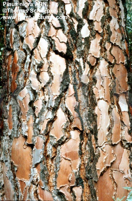 Botanische Beschreibung der Stammpflanze: Pinus sylvestris: Je nach Standort 10 bis 30 m, unter Umständen auch bis 45 m hoher Baum mit schirmförmiger Krone. Der Umfang der entweder geraden, schlanken und zylindrischen oder knorrigen, gedrehten und recht kurzen Stämme beträgt 1,8 bis 3,6 m. Die Borke des Stammes ist im unteren Teil grauschwarz- bis dunkelbraun, nach oben fuchsrot bis rötlichgelb. Die rötlichbraunen, länglich-ovalen Knospen sind 6 bis 12 mm lang und nicht oder nur kaum harzig. Die in 2er Gruppen angeordneten, blau- bis graugrünen, unterschiedlich langen (etwa 2 bis 7 cm) Nadeln sind spitz und um ihre Längsachse gedreht. Die schon im ersten Jahr zurückgebogenen ("hängend") Zapfen stehen einzeln oder in Gruppen zu 2 bis 3. Sie sind 6 bis 12 mm lang gestielt, oval-konisch, 2,5 bis 7 cm lang und matt graubraun. Auf der sonnenzugewandten Seite sind die Schuppen meist stärker entwickelt. Die 3 bis 4 mm langen, länglichen Samen besitzen einen ca. 3mal so langen Flügel. Pinus nigra: 20 bis 40 m, zuweilen sogar bis 50 m hoher Baum. Es existieren mehrere Varietäten (z. B. die korsische oder kalabrische Schwarz-Kiefer mit eilänglicher Krone oder die Pyrenäen-Schwarzkiefer mit walzen- oder kegelförmiger Krone), so dass die Gestalt recht veränderlich ist. Die allgemein rissige Rinde kann grau bis braun gefärbt sein. Die 8 bis 12 cm langen, etwa 4 Jahre an den Zweigen verbleibenden Nadeln sind in zu zweit angeordnet, heller oder dunkler grün, recht steif oder beweglicher. Die nahezu sitzenden, in Gruppen zu 2 bis 4 angeordneten, waagerecht abstehenden Zapfen sind 5 bis 8 cm lang, hellbraun und glänzend. Sie enthalten 5 bis 7 mm lange, graue Samen mit 4 bis 5 mm langem Flügel. Pinus pinaster: Bis 35 m hoher Baum mit kegelförmiger Krone und zahlreichen Ästen, die bei älteren Bäumen oft nur im oberen Viertel vorhanden sind. Der Stamm kann einen Umfang bis 4,30 aufweisen und die Borke älterer Bäume ist dick, rotbraun und tief rissig. Die meist nach 3 Jahren abfallenden, 10 bis 20 cm langen, steifen, stechenden Nadeln stehen in Gruppen zu 2 an den Triebenden. Ihre Scheiden sind schwärzlich und 20 bis 25 mm lang. Die großen, spindelförmigen, braunen, nicht harzigen Knospen besitzen zurückgeschlagene Spitzen. Die in Gruppen zu 7 bis 7 angeordneten, eikegelförmigen, hellbraun glänzenden, schief abwärts gerichteten Zapfen besitzen einen 15 bis 20 mm langen Stiel. Nach der Samenreife verbleiben sie noch an den Bäumen, von denen sie erst nach mehreren Jahren abfallen. Die graubraunen, eilänglichen Samen sind 7 bis 8 mm lang und 2 bis 3 cm lang geflügelt. |