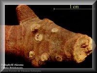 Gewinnung der Droge: Der Wurzelstock wird im Herbst ausgegraben, gewaschen, in ca. 10 cm lange Stücke zerschnitten und sorgfältig getrocknet. |