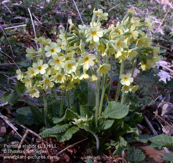 Verbreitung: Das Verbreitungsgebiet beider Arten erstreckt sich von Spanien über Mitteleuropa nach Osten über den Kaukasus bis zum Altai und den Nord-Iran. In Skandinavien findet sich Primula elatior nur in Dänemark und Süd-Schweden, wogegen Primula veris neben Dänemark in ganz Schweden, Norwegen und Finnland anzutreffen ist. Primula elatior gedeiht bevorzugt auf frischen Böden in Laubwäldern (vor allem Auenwäldern), auf extensiv genutzten Gebirgswiesen, an Bach- und Grabenrändern und in Parks, Primula veris bevorzugt auf Halbtrockenrasen, auf trocknen bis wechseltrocknen Wiesen, an Böschungen, Dämmen und Wegrändern. |