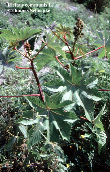 Stammpflanze: Ricinus communis L. / Christuspalme, Hundsbaum, Rizinus, Wunderbaum [Fam. Euphorbiaceae / Wolfsmilchgewächse]. |