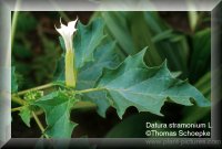 Stammpflanze: Datura stramonium L. / Gemeiner Stechapfel, Asthmakraut [Fam. Solanaceae / Nachtschattengewächse]. |