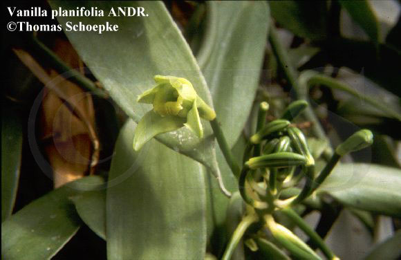 Stammpflanzen: Vanilla planifolia JACK., gelegentlich auch Nutzung Vanilla tahitenis J. W. MOORE / Vanille [Fam. Orchidaceae / Orchideengewächse]. Synonyme: Vanilla fragrans auct., Vanilla fragrans (SALISB.) AMES., Myrobroma fragrans SALISB. Dt. Synonyme: Bourbon-Vanille. Englisch: Bourbon vanilla, vanilla. |