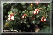 Stammpflanze: Vaccinium vitis-idaea L. / Preiselbeere [Fam. Ericaceae / Heidekrautgewächse]. Synonyme: Myrtillus exigua BUBANI, Vaccinium rubrum DULAC, Vitis idaea punctata MOENCH, Vitis-idaea punctifolia S. F. GRAY. Dt. Synonyme: Kronsbeere. Englisch: alpine cranberry, cowberry, foxberry, lingberry, lingen, lingenberry, lingon, lingonberry, mountain cranberry, rock cranberry. |