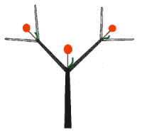 ), bei dem die Hauptachse mit einer Blüte endet und zwei Seitenachsen das Hauptwachstum fortsetzen.