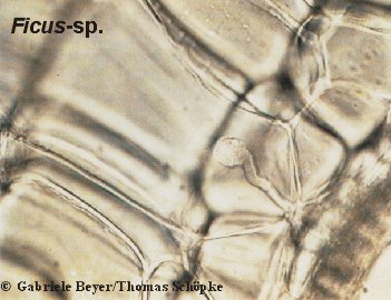vergrößerte Epidermiszellen, in die ein keulenförmiger,